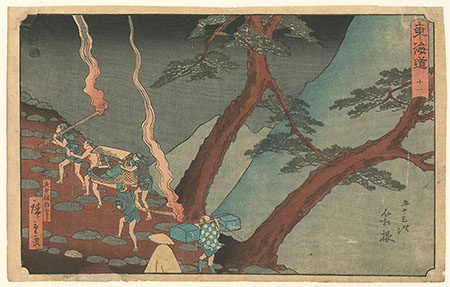 9 #11 - Travelers with torches at night at Hakone... Hiroshige |