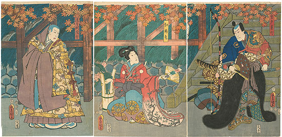 | 1 From right to left - Bando Hikosaburo IV as... Kunisada (Toyokuni III) |