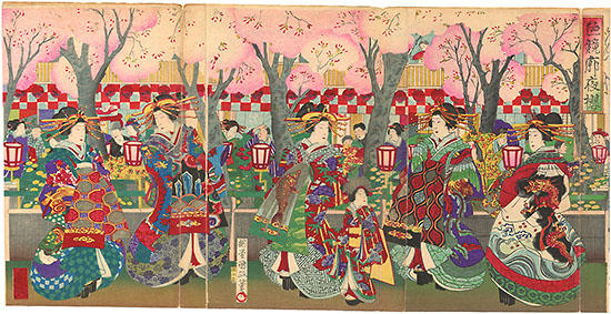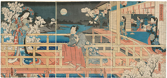 6 Genji and women viewing cherry blossoms at night... Kunisada (Toyokuni III) |