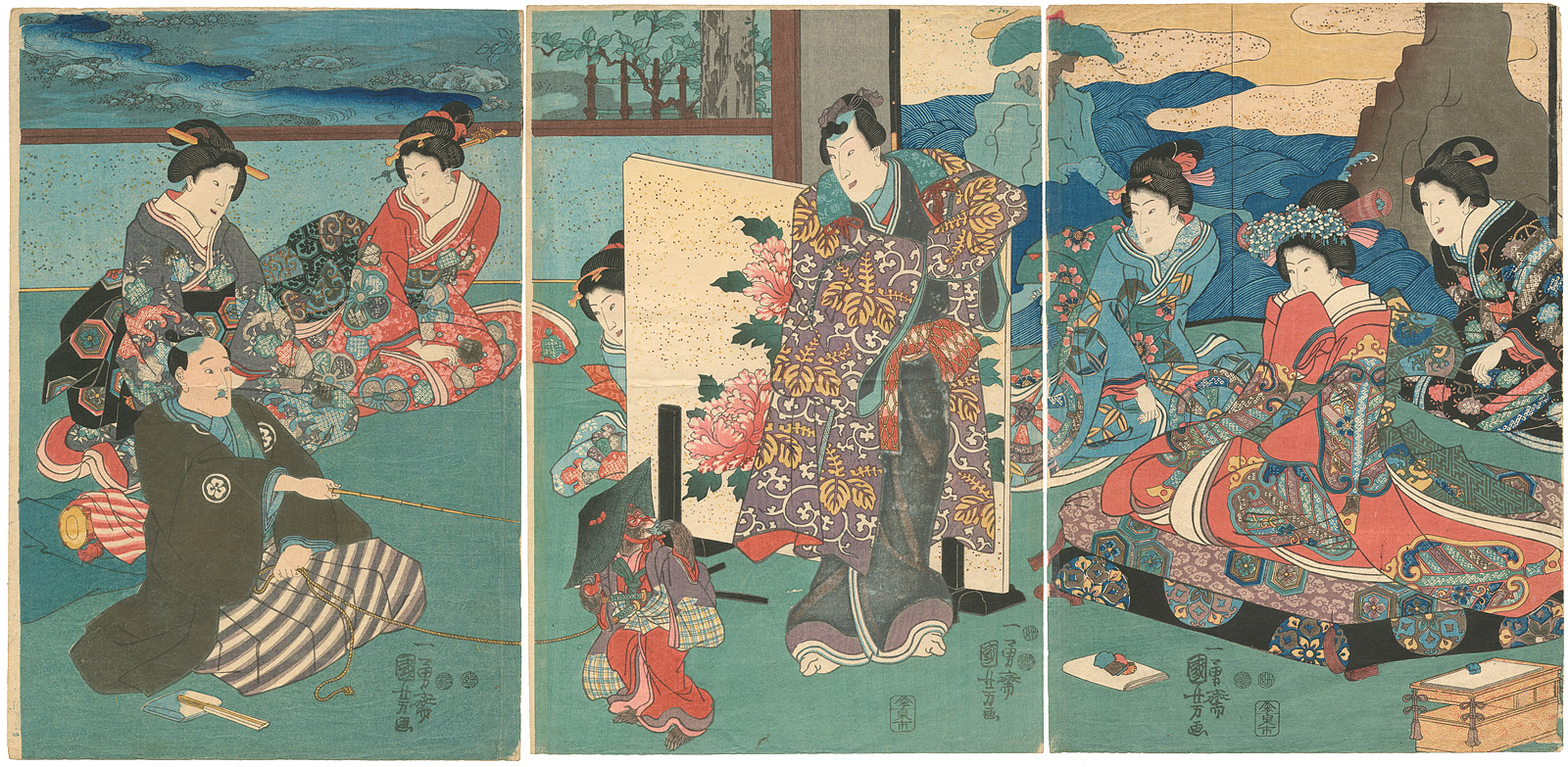 Title Genji and women watching a monkey perform